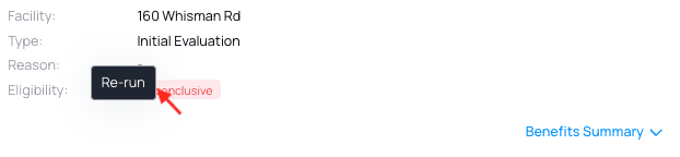 • Rerun EligibilityYou can rerun an eligibility check on any of these encounters by simply clicking the patient’s eligibility status.