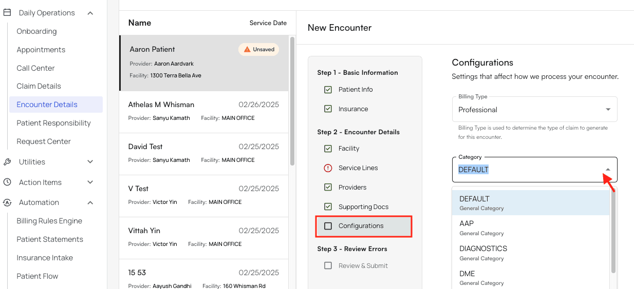- The ‘Category’ dropdown will be available for modification if you’re editing or creating a new encounter in such a situation.
