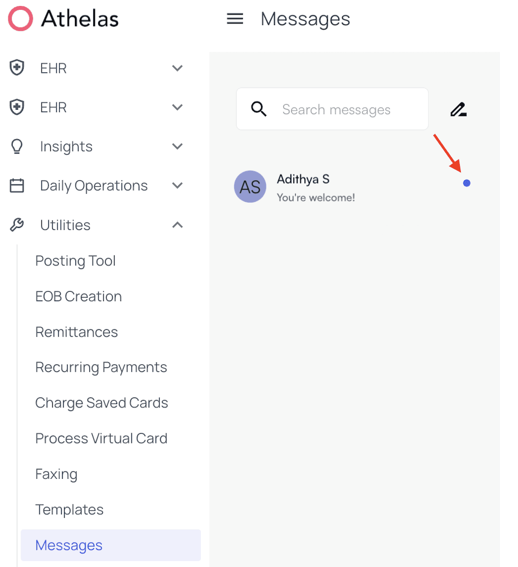 To begin a thread with one or more colleagues, navigate to the Messages page and click the pencil icon to create a new conversation.