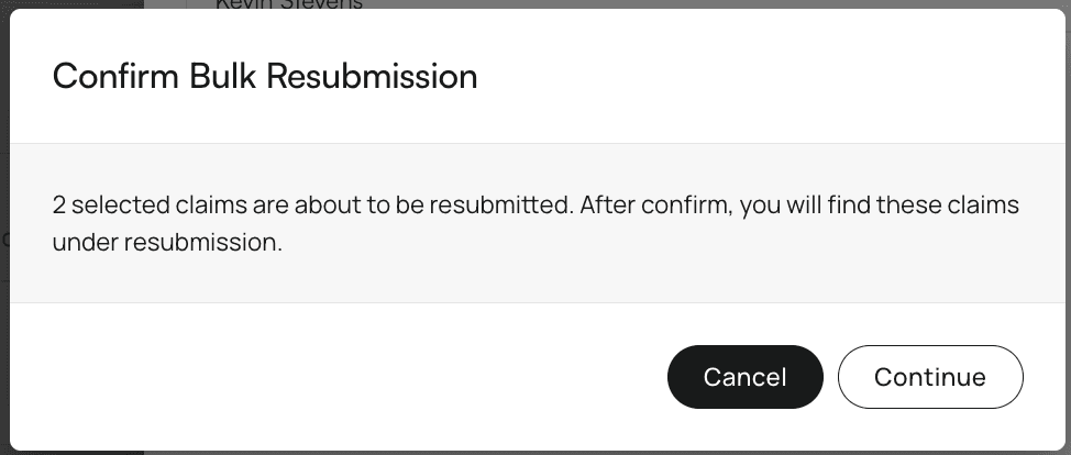 Confirm Resubmission. A popup will appear asking for confirmation and noting that the selected encounters will be listed as ‘Resubmitted.’