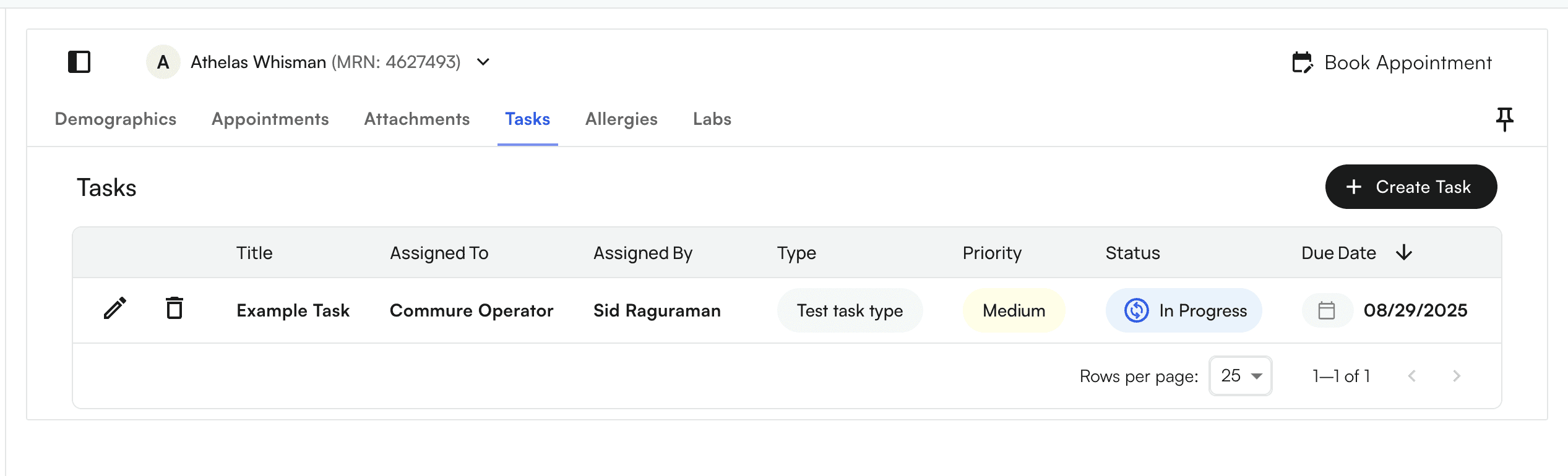 Additionally, you can associate a task to a specific patient or group of patients. You can see each patient’s related tasks on their patient profile.